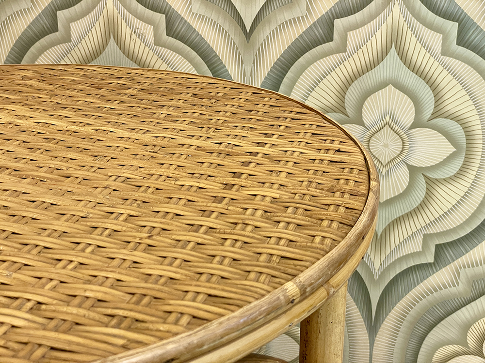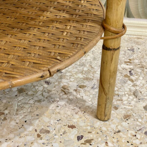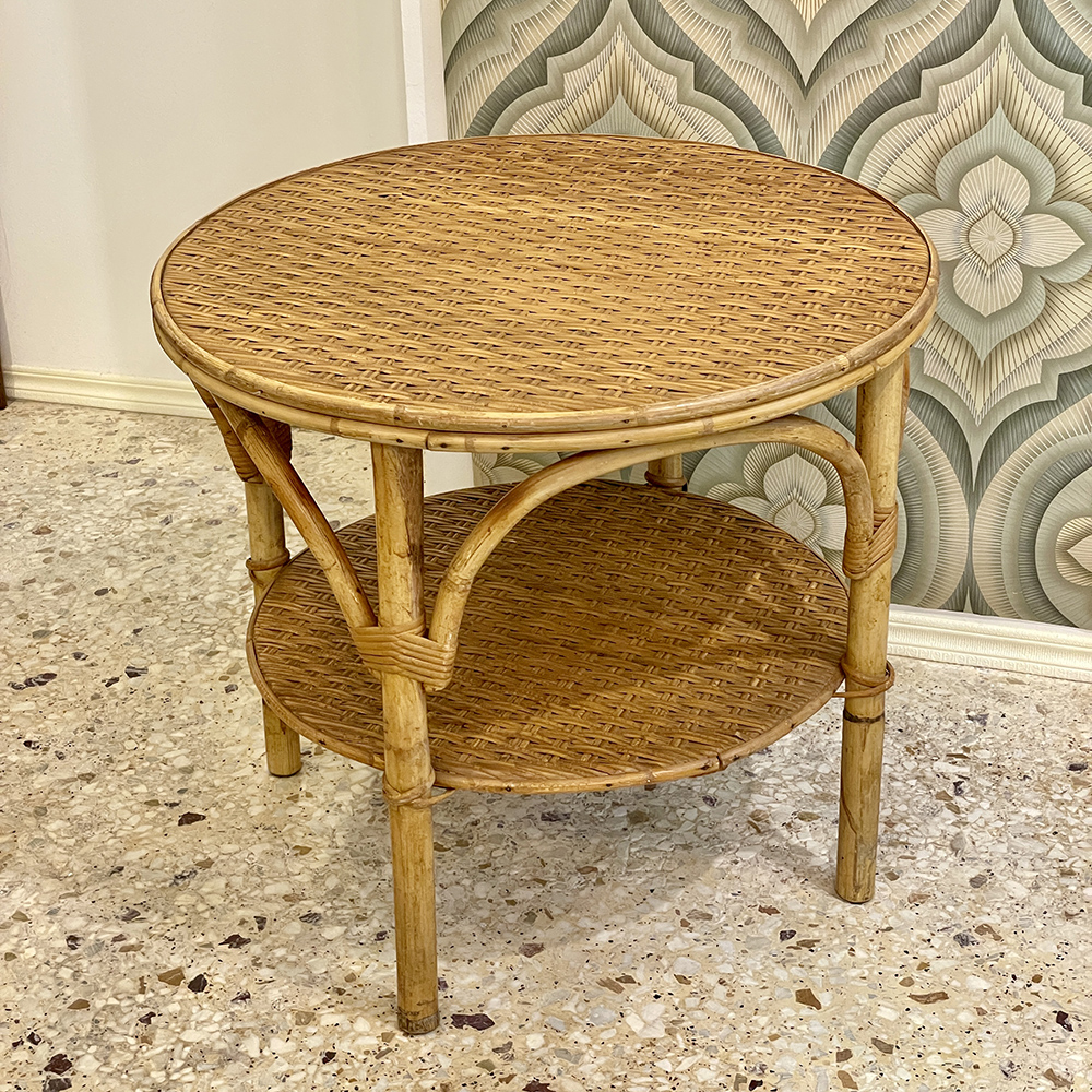Vintage circular bamboo coffee table with 2 levels.
