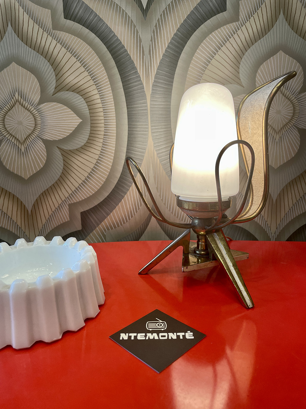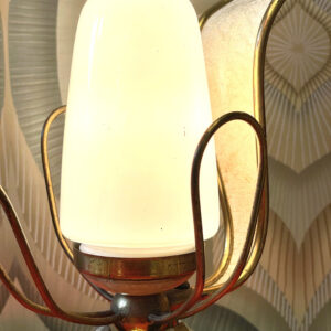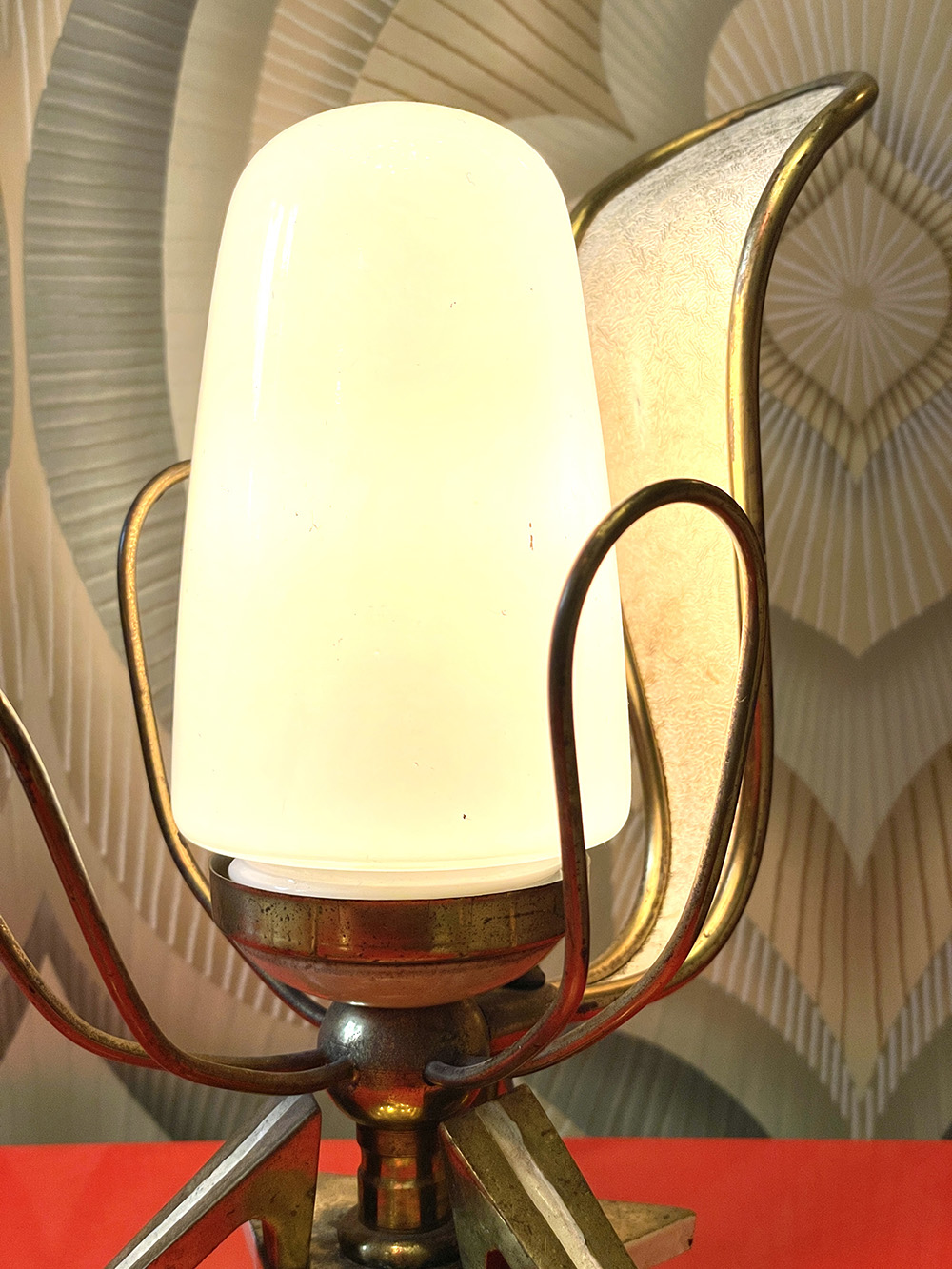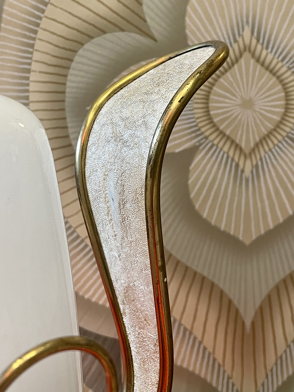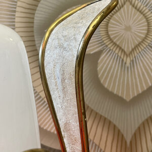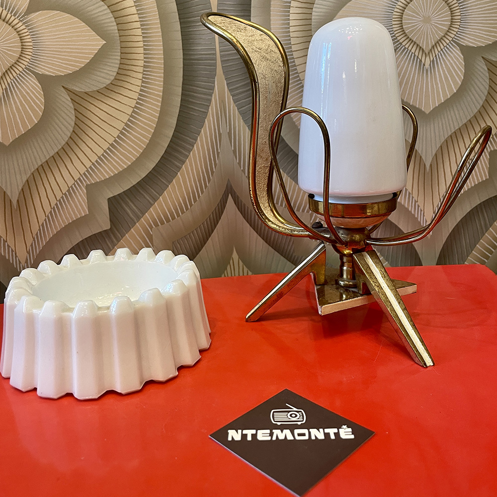 Art Deco πορτατίφ χρυσό με λευκές λεπτομέρειες και γυαλί οπαλίνας, με ιδιαίτερο σχέδιο που μοιάζει με φύλλα λουλουδιού.