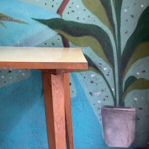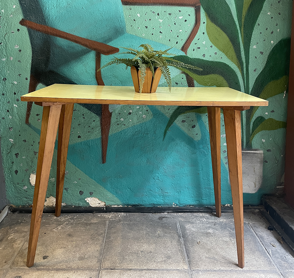 Σε κίτρινο χρώμα με ξύλινα πόδια.