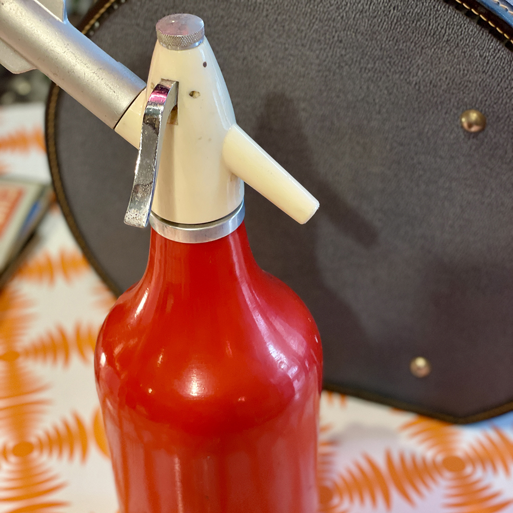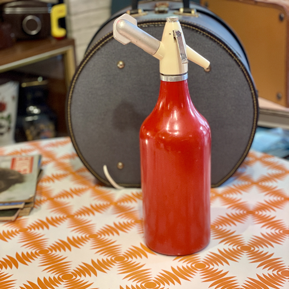 Syphon σόδας, δεκαετίας 1960. Ιδανικό για διακοσμητικό σε μπαρ ή σε κουζίνα σε έντονο κόκκινο χρώμα.