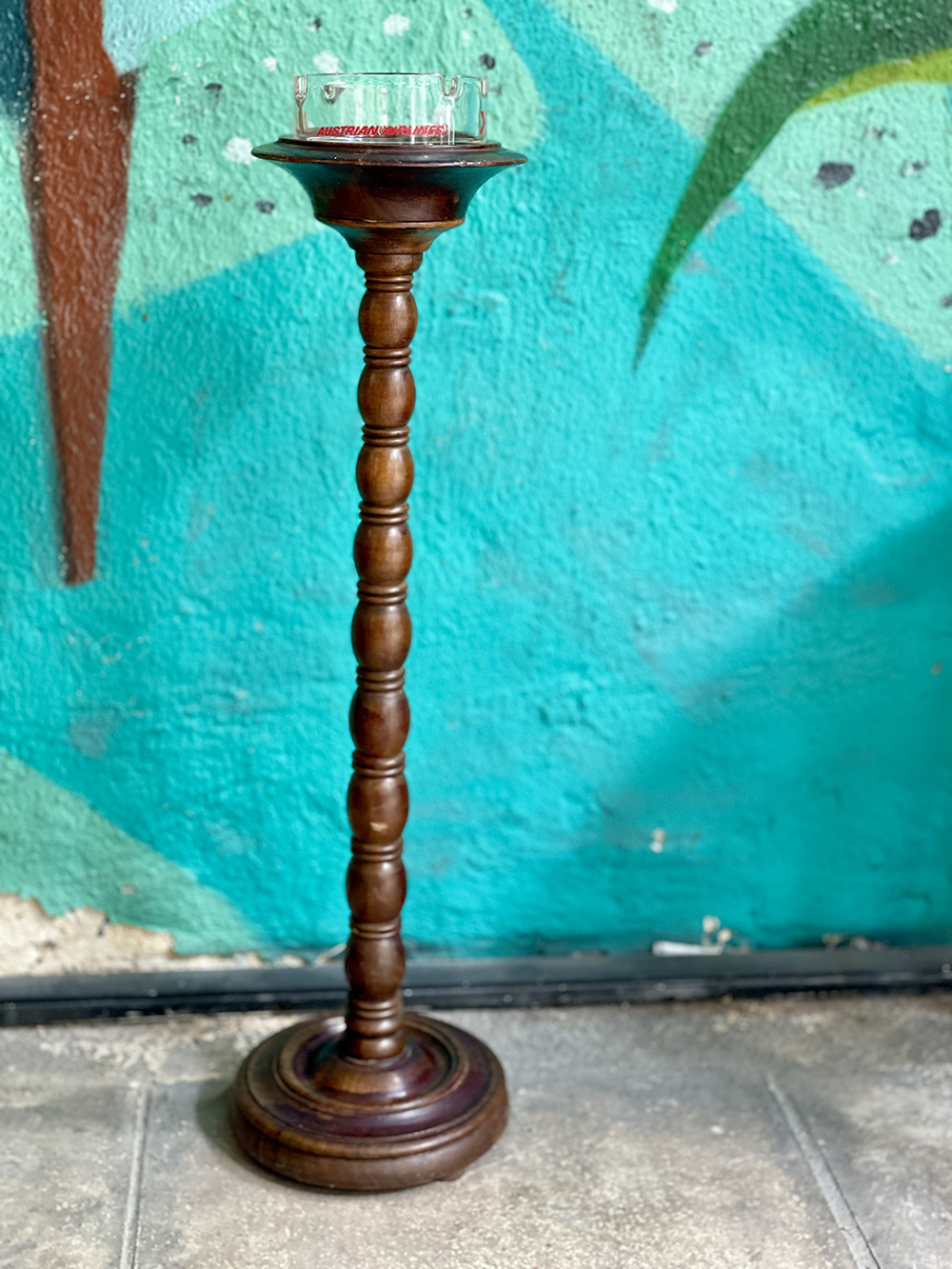 Vintage, επιδαπέδια, ψηλή, ξύλινη βάση για μικρό γλαστράκι ή τασάκι.