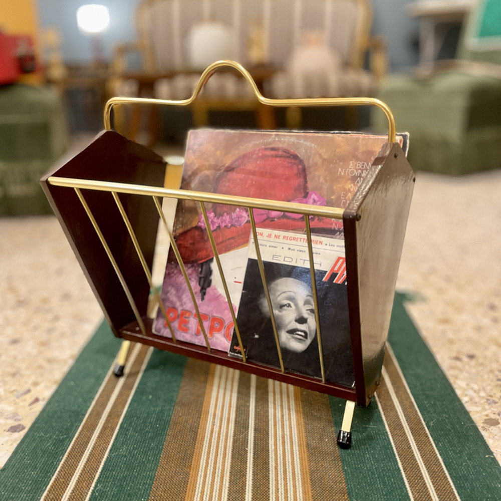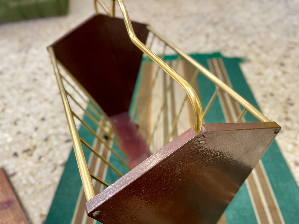Θήκη περιοδικών με ξύλινο σκελετό, χρυσές λεπτομέρεις και χρυσό χερούλι, του 1960.