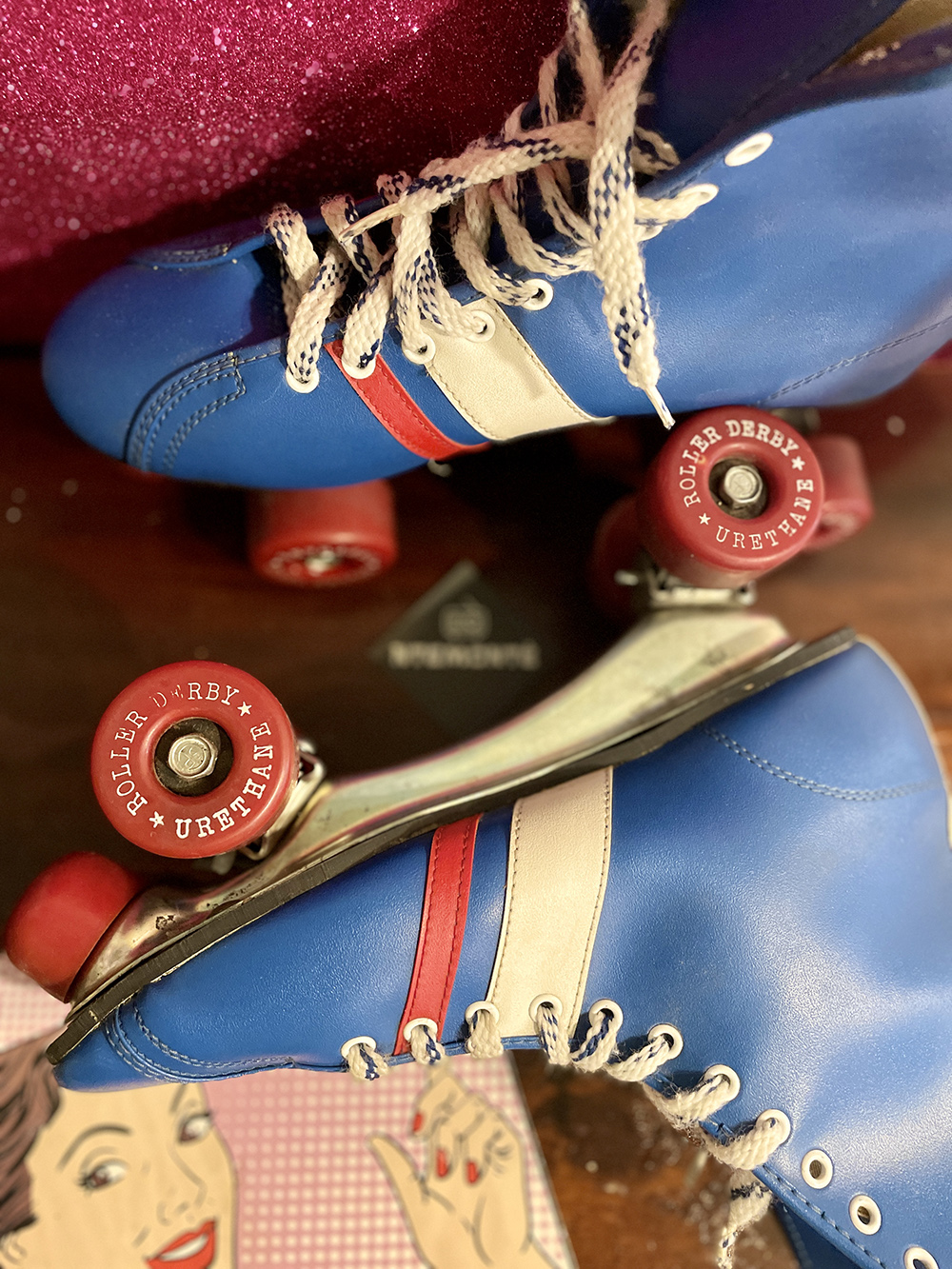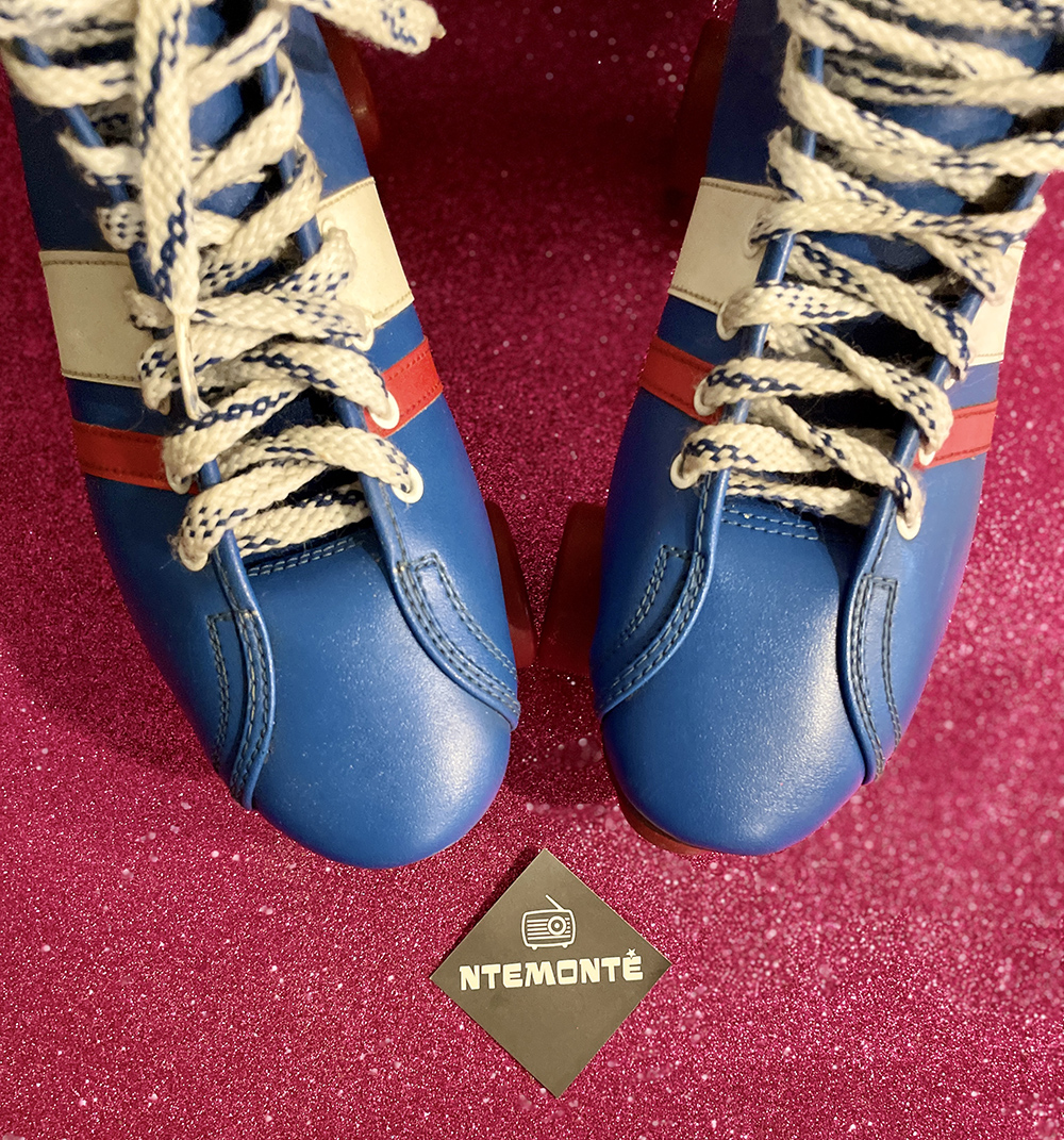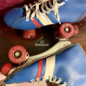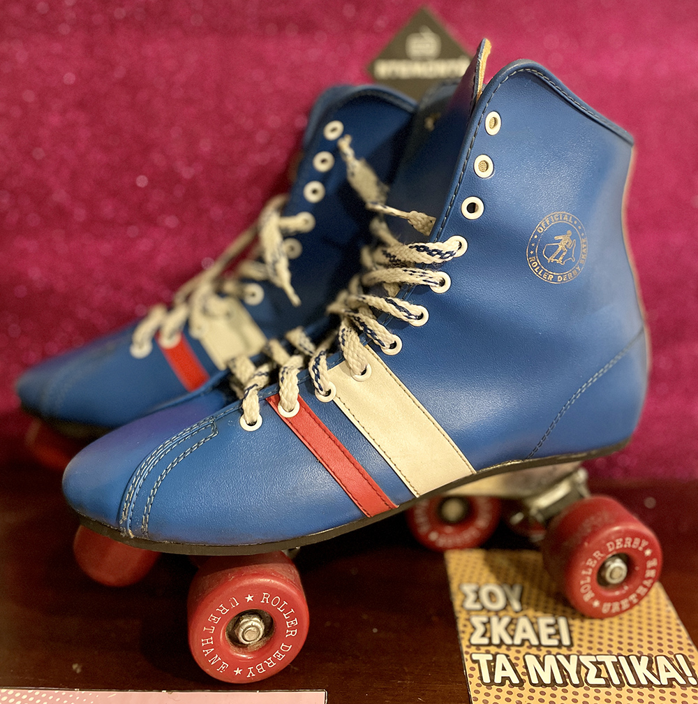 Πατίνια Derby Fireball του 1970 σε λευκό, κόκκινο και μπλε χρώμα.