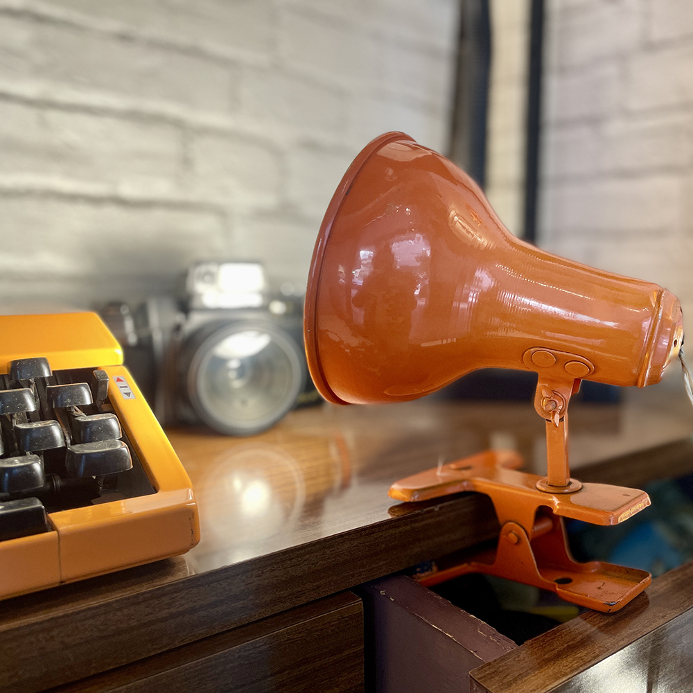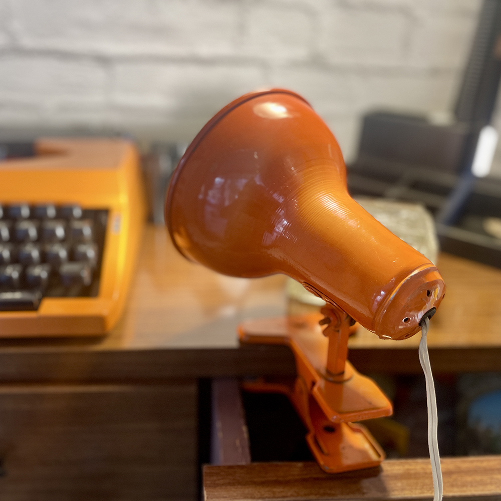 60s μεταλλικό πορτοκαλί προβολάκι με βάση κλιπ. Σε πολύ καλή κατάσταση με μικροφθορές λόγω παλαιότητας.