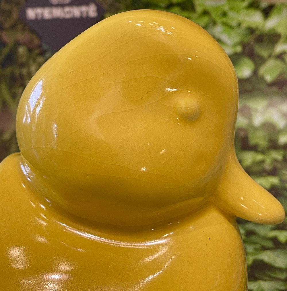 Συλλεκτικό κεραμικό τασάκι σε σχήμα πάπιας σε έντονο κίτρινο χρώμα.