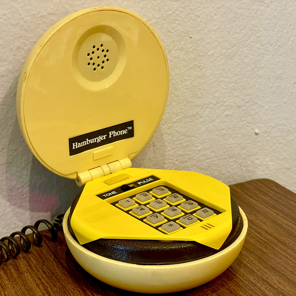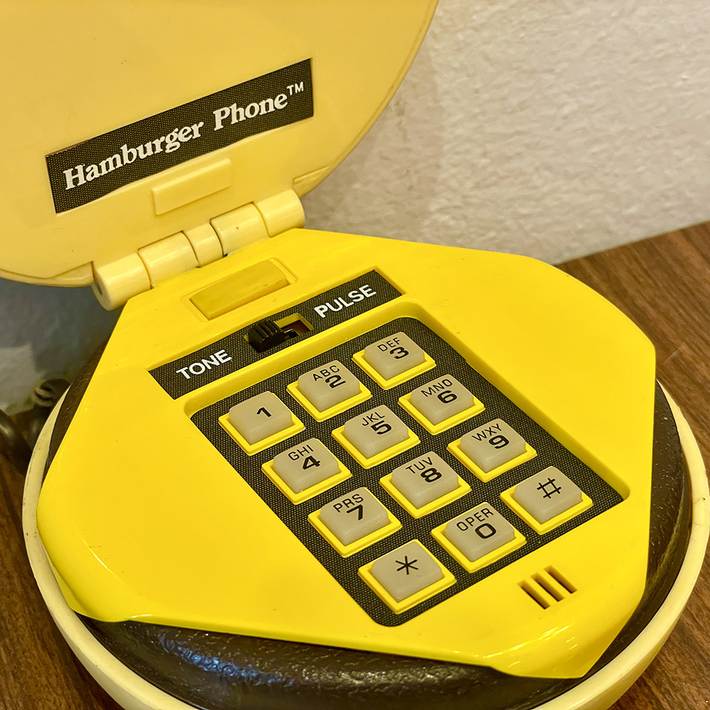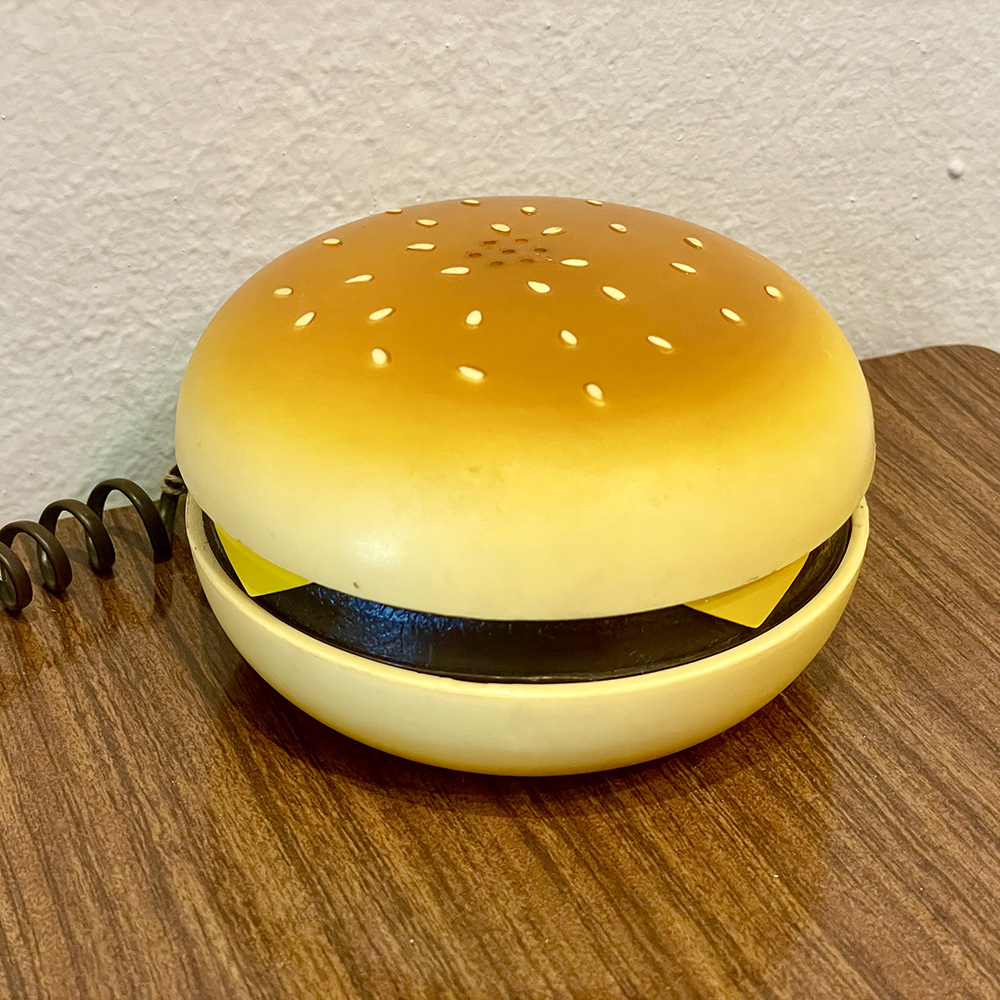 Vintage & συλλεκτικό, ενσύρματο τηλέφωνο σε σχήμα cheeseburger, από τα 80s.
