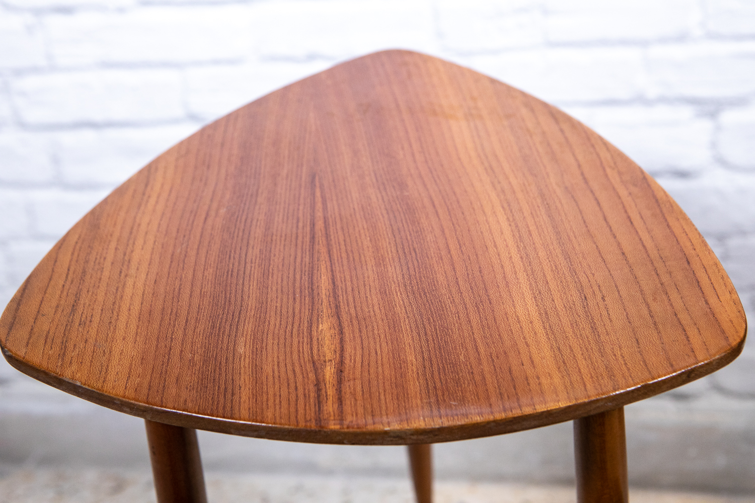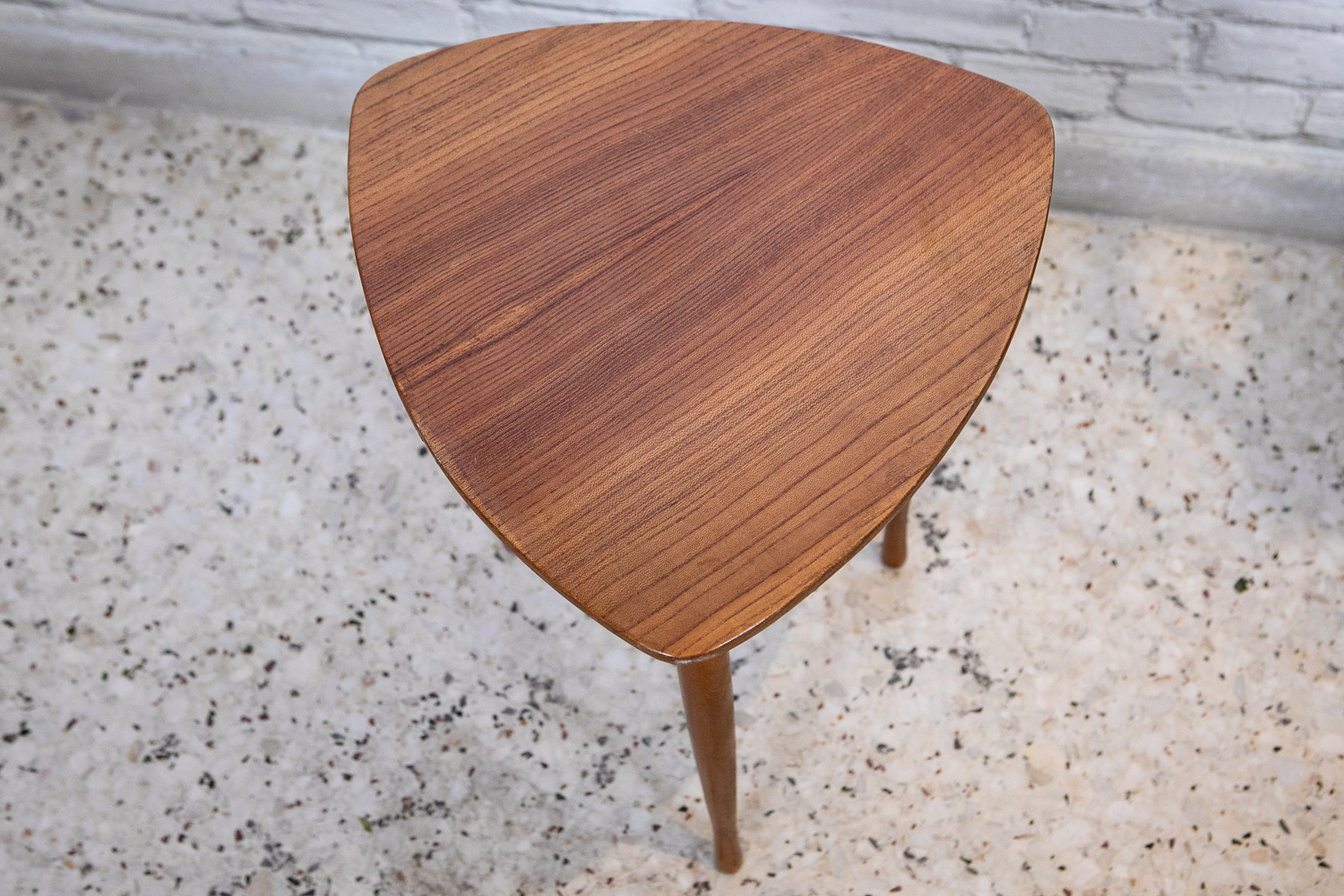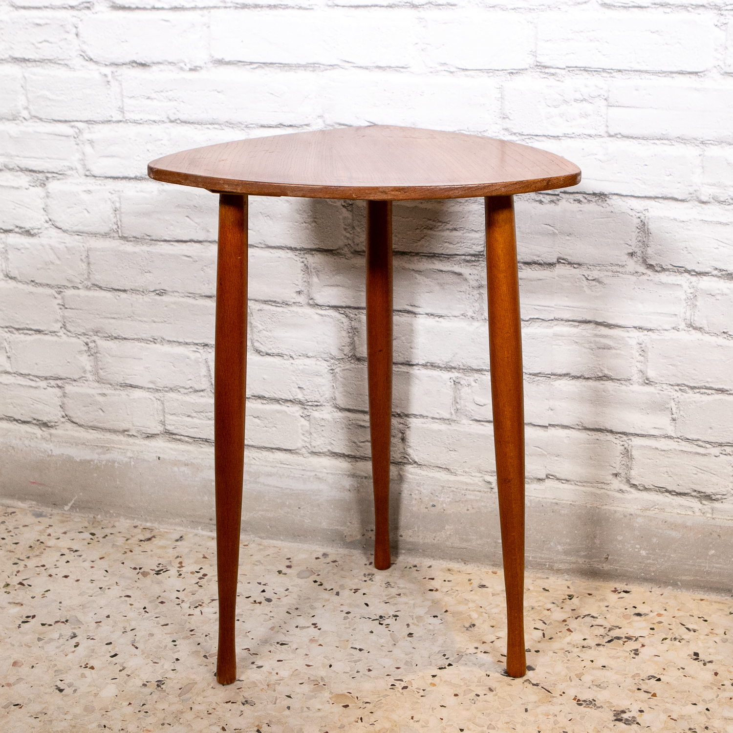 Δανέζικο  60s ξύλινο τραπεζάκι σε σχήμα τριγωνικό σε άριστη κατάσταση, με ιδιαίτερο τελείωμα στα πόδια του